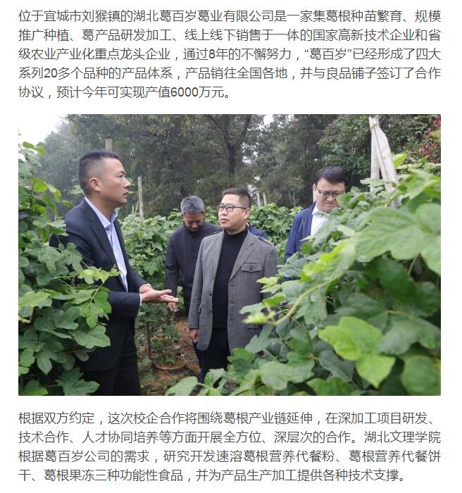 学院与湖北葛百岁葛业有限公司签订校企合作框架协议