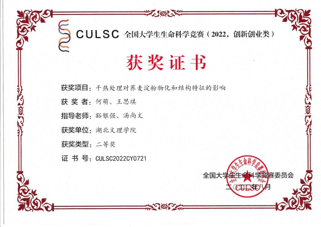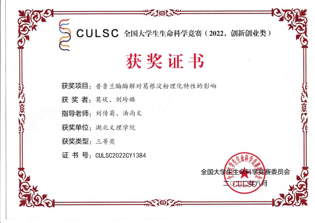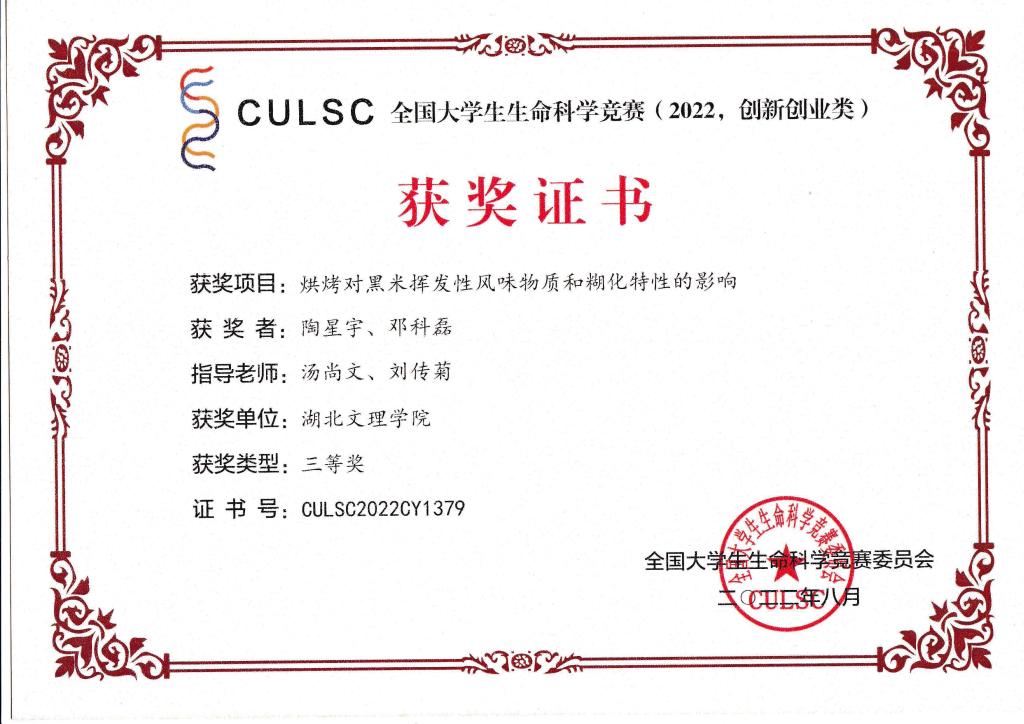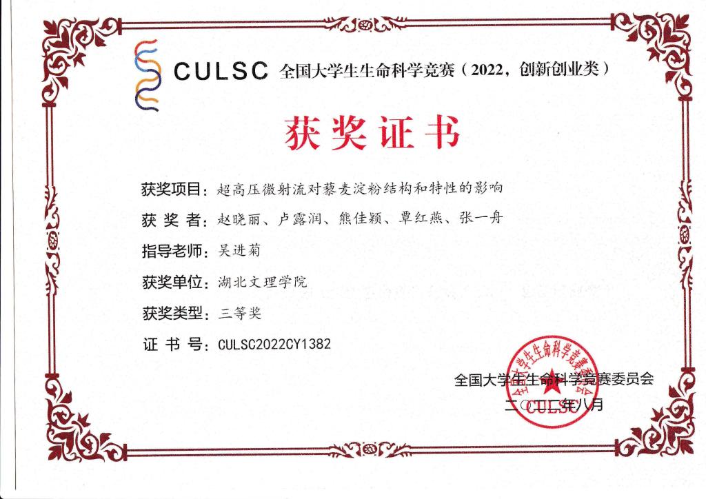 2022年全国大学生生命科学竞赛(创新创业类)已落下帷幕,我院学子在指导教师的精心辅导下奋力拼搏,取得优秀成绩,获得国家级奖励12项,其中一等奖1项,二等奖4项,三等奖7项,祝贺他们!!!