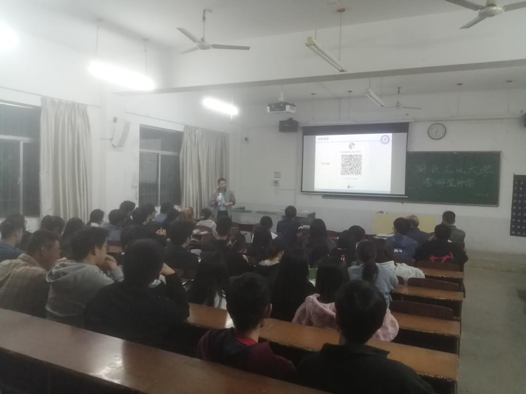 化工系主任候秋飞就学科建设、化工专业工程教育认证等问题与来宾进行了深入交流。随后,教学委员会主任肖作安主持了湖北工业大学的研究生招生宣讲会。学院化工、化学、食品和生物专业的学生参加了本次宣讲,同学们就学校奖助金评定方法、复试政策、毕业去向等进行提问,胡兵教授一行针对同学们的问题详细地给予解答,学生们也以热烈的掌声对各位老师的解答表示衷心感谢。