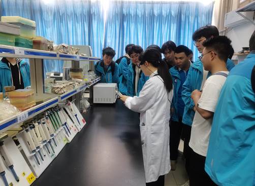 活动期间,郭壮教授介绍了学院招生、培养、就业情况以及科研平台建设情况,鼓励来访学生积极报考我院专业。王玉荣博士带领学生参观了学院化工工艺、化工原理、仪器分析、食品风味品质评价、食品元素检测、生物科学、无机及分析化学、基础化学、天平室等实验室,以及食品组分分析、食品物性与感官分析、食品常规理化分析等平台,并就学生比较感兴趣的移液器、离心机、PCR仪和超净工作台的使用进行了详细讲解。她还以自己襄阳籍、湖文本科毕业生的身份,分享了自己在湖北文理学院10多年的成长和感受,欢迎学生积极报考成为湖文大家庭一员。