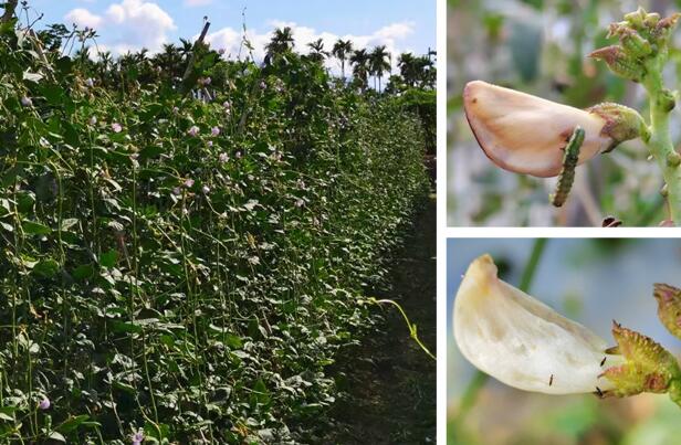 据了解,豇豆是海南省北运瓜菜的优势产业,占全省蔬菜总面积的10%。海南省豇豆产区主要分布在三亚、陵水、乐东和澄迈。由于海南特殊的气候条件,其年均气温22.4-25.5oC,有利于豇豆生长发育,也利于豇豆病虫害大暴发,尤其是豆大蓟马、豆荚螟、轮纹叶斑病、根腐病等,这些病虫害时常混合发生,大大增加了豇豆安全生产的难度系数。