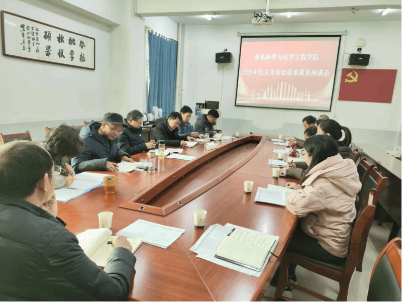 (通讯员 王姗姗)2026年1月5日上午,食化学院召开民主生活会征求意见座谈会。会议由党委书记储杰主持,学院全体党委委员及中层管理干部参加会议。