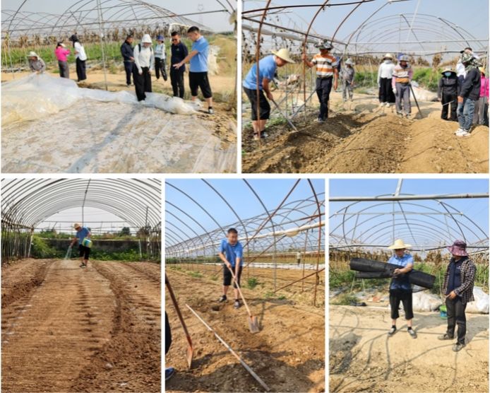 同时,史教授还亲自示范了如何开沟、如何铺网、如何搭架等关键种植步骤。在开沟环节,他强调了沟深与沟距的重要性,以确保豇豆根系能够充分扩展并吸收养分;在铺网与搭架方面,他又详细讲解了如何选择合适的材料、如何搭建稳固的支架来支撑豇豆藤蔓攀爬,以提高光能利用率,促进开花结实。