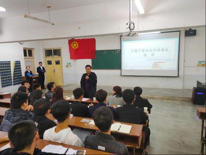 (通讯员 刘双圆)10月11日晚,食品科学技术学院·化学工程学院2019年学生干部干事培训开班正式开讲。院党委副书记刘向东为学生干部讲第一课,学工办主任姚继平、院团委书记刘双圆出席开班式。