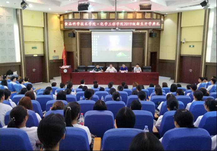 (食品·化工学院 教工通讯员 刘双圆 杜涓)9月9日上午10点,食品·化工学院于行政楼一楼报告厅隆重举行2019级新生开学典礼。会议由党委副书记刘向东主持,党委书记杨豪良、院长助理李玉奇以及优秀校友张志敏博士出席典礼。