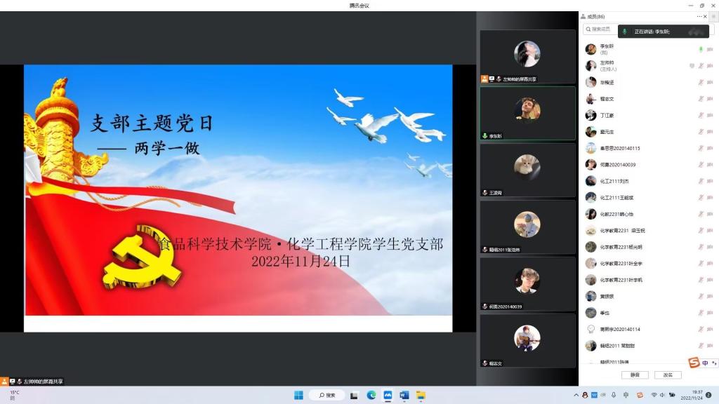 (食品·化工学院 通讯员 熊佳颖)11月24日晚上18:30,食品·化工学院学生党支部于腾讯会议开展线上党支部11月学习大会,食品·化工学院学生党支部书记包静以及学生党支部全体成员参加会议。