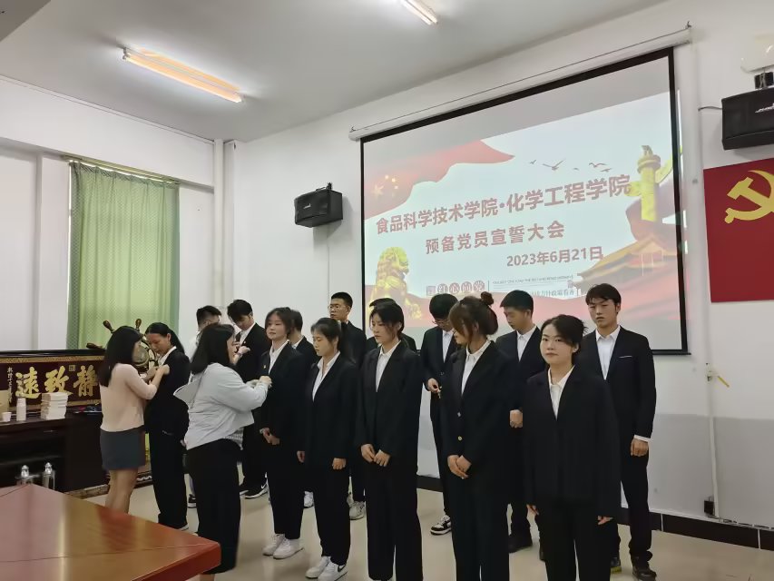 (食品·化工学院 通讯员 季也)6月21日中午12点,食品·化工学院于N3-330会议室召开预备党员宣誓大会,食品·化工学院学生党支部书记包静,辅导员向琼、周武毅以及学生党支部全体成员参加本次会议。